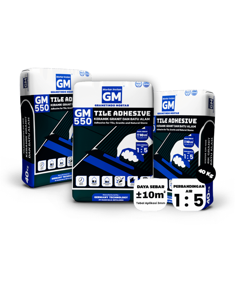 Grametindo Mortar (GM) Semen Perekat adalah solusi ideal untuk pemasangan keramik, granit, dan batu alam pada lantai maupun dinding. produk ini dirancang untuk memberikan daya rekat yang luar biasa, memastikan hasil pemasangan yang kokoh dan tahan lama. Teknologi canggihnya mencegah terjadinya popping, sehingga memberikan kepercayaan penuh pada setiap aplikasi.